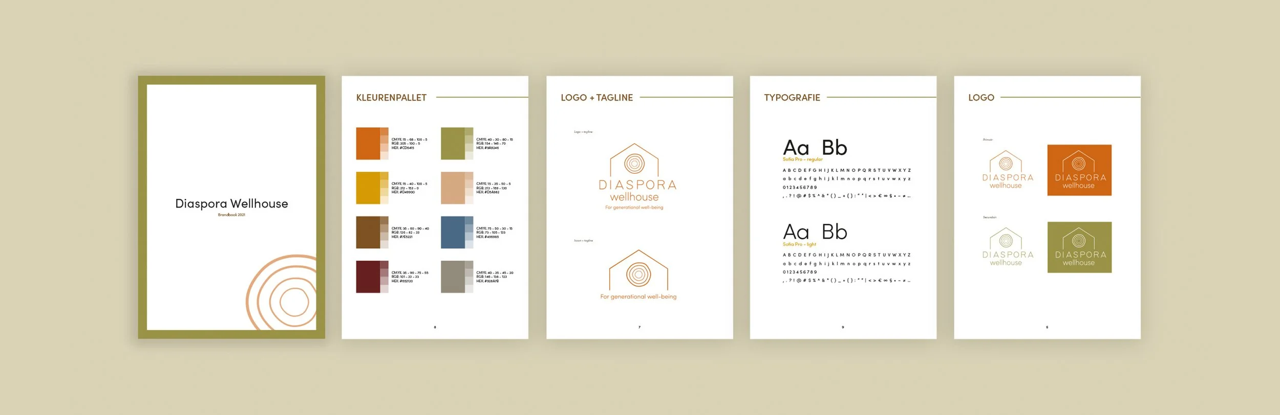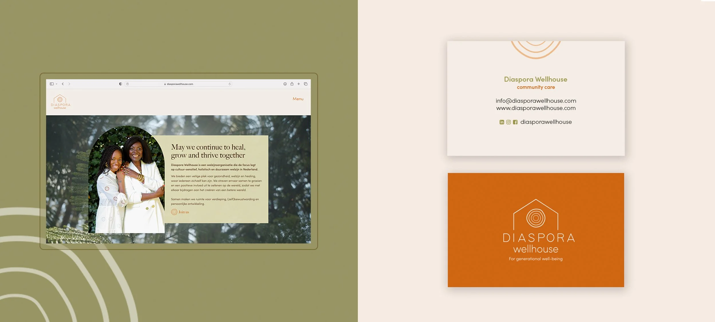 Diaspora Wellhouse is a well-being organization that focuses on culturally sensitive, holistic and sustainable well-being in The Netherlands. Due to previous collabs the founders of DWH asked me to create their brand identity. I used earthly colours and elements as the foundation of their brand to show the warmth and safety of this ‘house’.